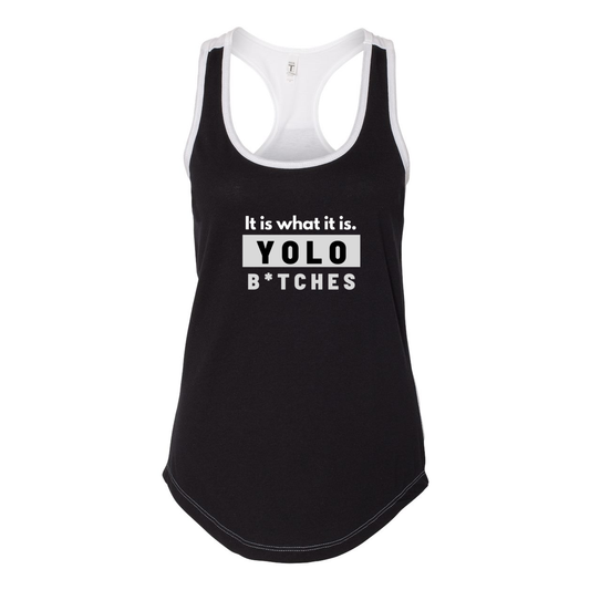 YOLO FITTED's " YOLO B*TCHES, IT IS WHAT IT IS" COLOR BLOCK RACER BACK TANK