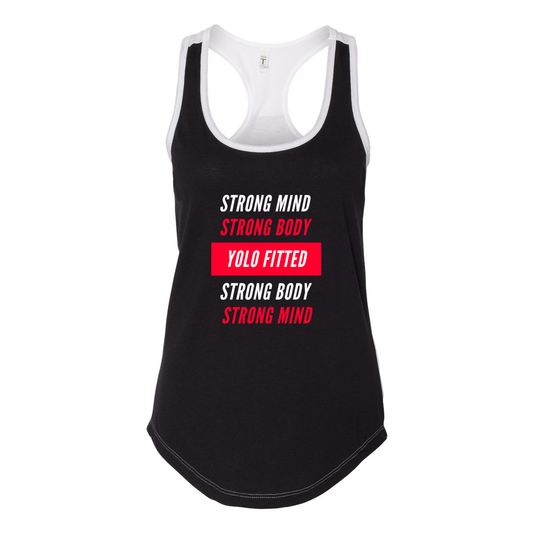 YOLO FITTED WOMEN'S BOLD STRONG MIND STRONG BODY RACERBACK TANK