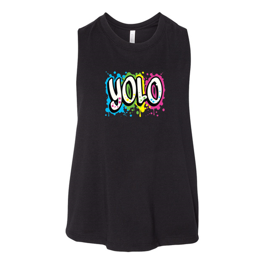 YOLO FITTED WOMEN'S GRAFFITI RACERBACK CROPPED TANK