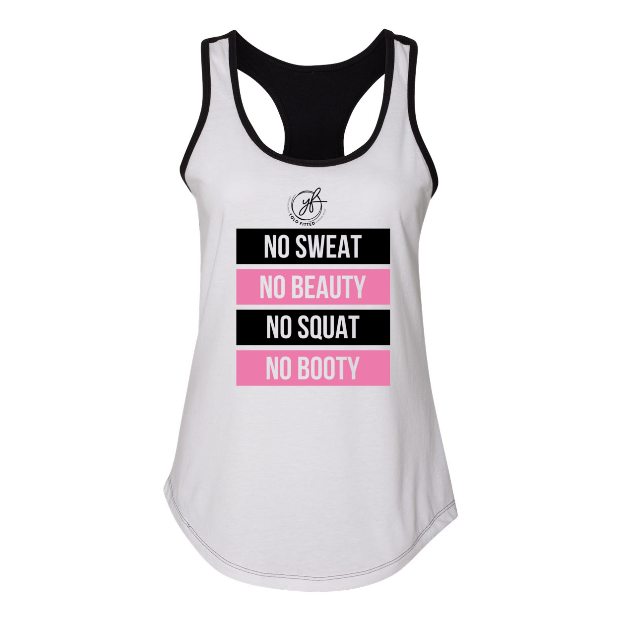 YOLO FITTED'S Women's NO SWEAT, NO BEAUTY, NO SQUAT, NO BOOTY" RACER BACK TANK